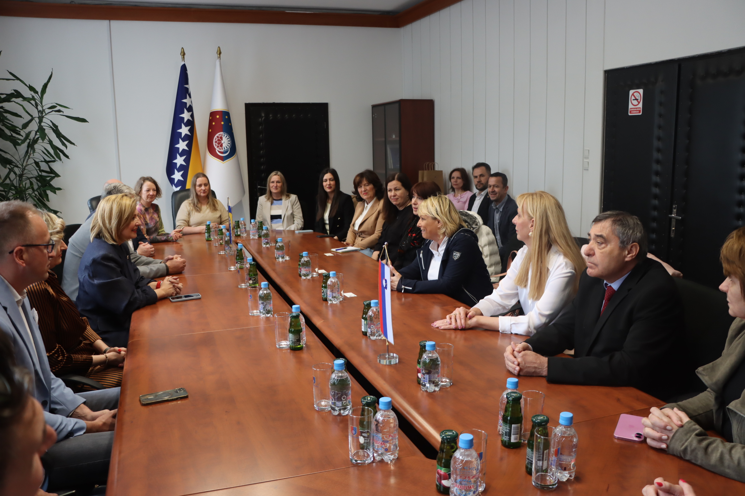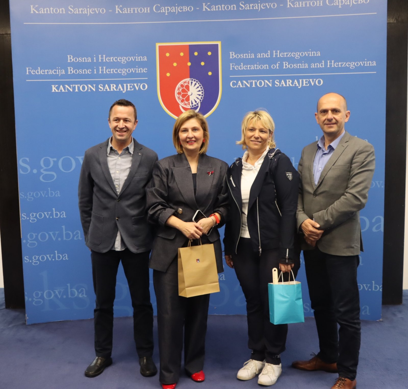 Ministarstvo za rad, socijalnu politiku, raseljena lica i izbjeglice Kantona Sarajevo, resorna ministrica Enda Pavić Pečenković, te direktori kantonalnih ustanova socijalne zaštite bili su domaćini svojim kolegama iz Slovenije koji borave u radnoj posjeti našem kantonu. Brojnu delegaciju iz Slovenije predvodila je generalna sekretarka Socijalne komore Slovenije Suzi Kvas, a njihova posjeta usmjerena je razmjenu iskustava i dobrih praksi u oblasti socijalne politike, te unapređenje međuinstitucionalne saradnje u oblasti socijalne zaštite. “Izuzetno mi je zadovoljstvo što sam imala priliku ugostiti predsjednicu i predstavnike Socijalne komore Slovenije, kao i direktorice i direktore ključnih socijalnih ustanova – Centra za socijalni rad, Instituta za socijalnu zaštitu, Doma za starije osobe i Socijalne njege u kući. Bila je to korisna razmjena iskustava i dobrih praksi u oblasti socijalne politike. Kao ministrica za rad, socijalnu politiku, raseljena lica i izbjeglice Kantona Sarajevo, posebno mi je važno da njegujemo ovakvu vrstu saradnje, jer ona doprinosi jačanju institucionalnih kapaciteta i boljoj podršci našim građanima”, poručila je ovim povodom ministrica Pavić Pačenković.